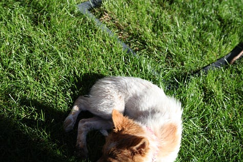 It’s eleven years later, and Jack is getting old. He can’t run anymore. He can’t really walk that far, though he wants to. His breathing is labored. He has snow on the mountain, his red fur is turning gray. His eyes look lost half the time and I think he sometimes forgets where he is. I know I’ll have to grim up and bear this last part. I’m trying to remember to enjoy whatever time I have left with him. We’ve been through so much together.